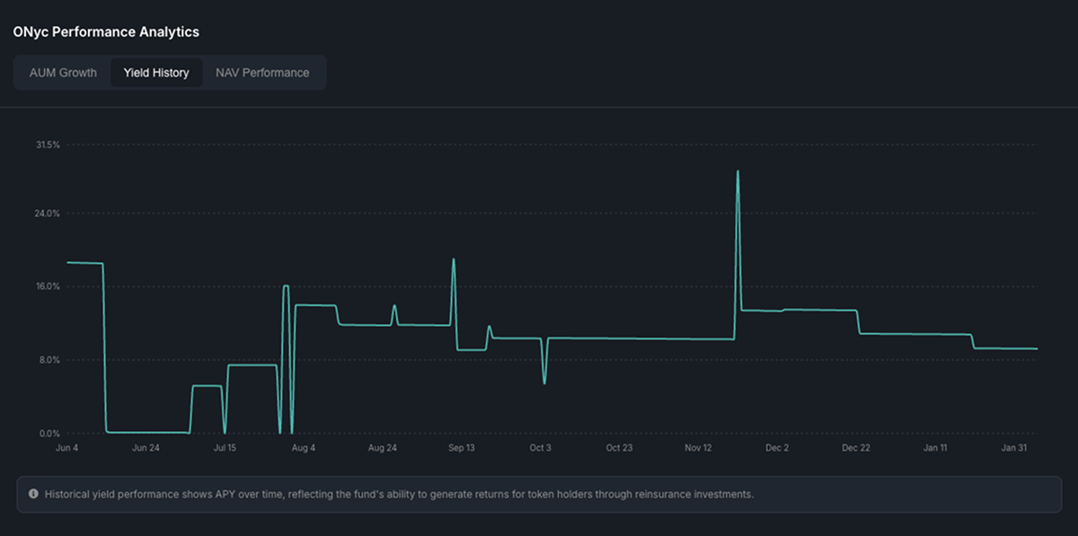 ONyc represents a structurally distinct yield primitive, delivering stable returns sourced from real-world reinsurance underwriting – fundamentally uncorrelated to crypto market volatility, liquidity cycles, or reflexive leverage.