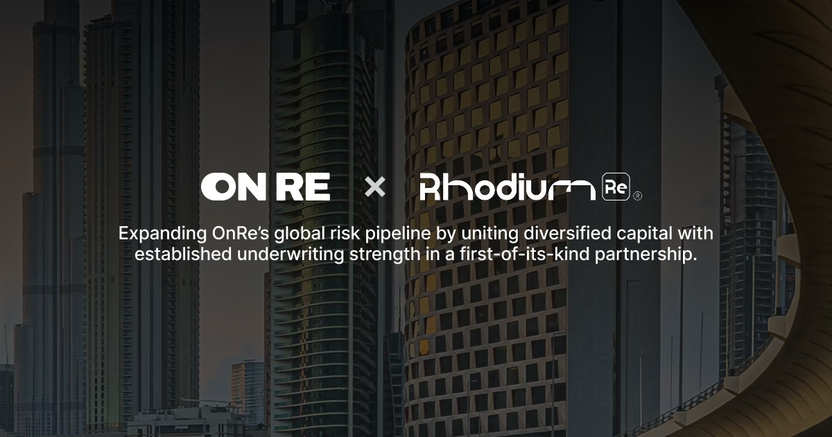 OnRe has partnered with Dubai-based MGA Rhodium Re, delegating $150M to expand underwriting distribution for ONyc, our tokenized reinsurance vehicle.